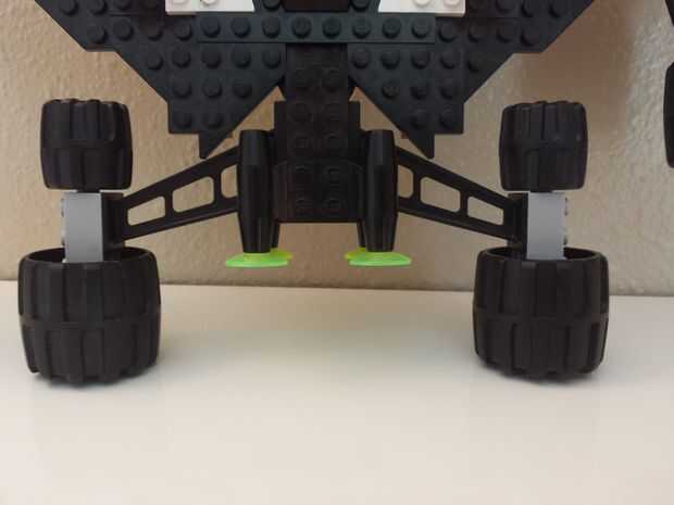 Hay una amplia gama de accesorios que puedes usar para tu nave, he usado ruedas anticuadas para los motores en la parte posterior y un montón de cañones láser. Puede utilizar literalmente cualquier cosa en tu colección de LEGO! El truco con los accesorios es el hecho que no se puede poner muchos de ellos. Por ejemplo, si pones demasiados motores, la nave puede ser demasiado pesada. Si pones demasiados cañones láser, podría drenar la energía más rápido. (Hablando en términos prácticos ;))