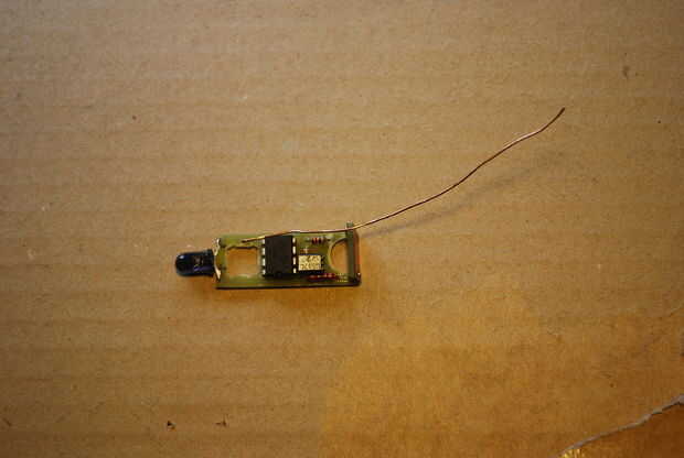 Antes de pegarlos todos juntos, seco cabe todo y aplicar un archivo donde necesario. He tenido que doblar el transistor horisontal completamente para adaptarse a todo. Usando un más pequeño, transistor montado superficie probablemente habría sido mejor pero no tengo ninguna en el momento.