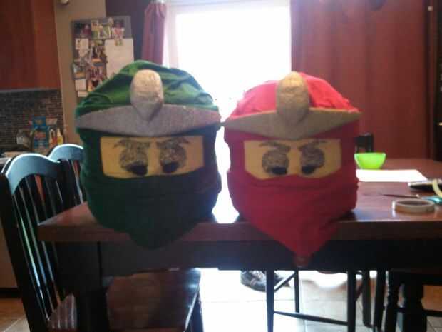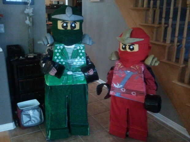 tanto mis hijos 5 y 7 años de edad querían desesperadamente ser sus personajes favoritos de Ninjago de Lego para Halloween este año por lo que me pidieron si podía ayudarles hacia fuera. Estaba un poco aprensivo en primero pero después de buscar en la web que encontré muchos tutoriales en línea con instrucciones detalladas sobre cómo hacer un disfraz de lego minifig. Algunos de los mejores se encontraron aquí en El truco para tirar es acertar con las proporciones para que se vea como una minifig lego adecuado. Así que asegúrese de tomar las medidas adecuadas y usar una minifig real como referencia. Empecé con las cabezas, usted puede encontrar muchos tutoriales sobre este método en línea. Medir el tamaño de la cabeza de los niños (no olvides las orejas) y corté un montón de círculos de una hoja de aislamiento de espuma de poliestireno que fue encontrado en la ferretería de mi local de caja grande. La cantidad de círculos depende del espesor de la espuma de poliestireno. ¿Cortar óvalos de los círculos, esto es donde va la cabeza de los niños, recordar las medidas que tomamos? Luego con cuidado unir los círculos y dejar secar. Una vez seco, forma la cabeza con un cuchillo, Sierra, cincel, lo que sea justo que se vea como una cabeza del minifig. Se trata de sucio así que asegúrese de tener una aspiradora de taller práctica. Después de que la arena abajo (Arenas de espuma de poliestireno muy bien) luego pintarla y dejarla secar. Para el torso básicamente hice una caja de cartón. Grabó las piezas de cartón con cinta aislante de doble ventana, esto se puede encontrar en la mayoría dólar almacena y funciona bien. Pinté las cajas con pintura de embarcaciones (también encontrada en el almacén del dólar). La previsión del tiempo para Halloween llama de lluvia para que rocíe una capa ligera de pegamento de aerosol de Elmer en las cajas y entonces los envuelto en plástico para protegerlos de la lluvia. No ¿soy ningún científico pero imaginé que lluvia y pintado cartón probablemente no se mezclan muy bien? Los tutoriales que encontré tenían los pantalones hechos de cartón, así pero no me gusto. Cosí los pantalones de material, pensé que les haría más fácil caminar y probablemente iba a durar más tiempo. Que crea un patrón y pantalones cuadrados muy simples que os adjunto en la parte interior inferior del cuerpo de la caja con cinta de velcro (también tienda de dólar). Puse bolsillos manga pequeñas en las patas de los pantalones para deslizar un bloque de espuma de poliestireno para crear la apariencia de un dedo del pie. Sin embargo no hacen dedo tan grueso como la mía. Mis hijos tropezaron en unos pasos por los dedos del pie antes de que se cuelgue de él. Las manos se hicieron de un colgador de ropa, cartón y algunos vasos de papel. Forma de la percha en una garra que se utiliza para tazas para crear mangas de puño. A continuación os adjunto las tazas a la percha con un montón de cintas. He formado la mano más con cartón y envuelto en cinta aislante negra. No te olvides de cortar los agujeros para sus manos reales (los necesita así puede llevar sus bolsas de dulces). ¿Las manos fueron el dolor más grande y si eres creativo entonces tal vez usted puede subir con una manera más fácil de hacerlos? O ir sin pero ayudar a completar el look del traje. Las hombreras eran hechas de espuma de poliestireno, pintados y luego pegadas al cuerpo con cinta de doble cara. Finalmente, las máscaras y cabezas fueron acabadas envolviendo y pegando material para las cabezas con pegamento de aerosol de Elmer. El pegamento del aerosol también ayudó a definir el material endurecido y secado, dándole las arrugas y dobleces necesarios para darle el aspecto adecuado. Los ojos fueron cortados de la cinta, sin embargo tuve que usar la cinta de doble cara para pegarlas como no quería que la cinta se adhiera a la espuma de poliestireno. También se pueden ver pero penetra los agujeros de respiración en la máscara para que mis hijos podrían... ER... bien... aliento en esas cosas. Las piezas de corona de oro y plata fueron hechas de espuma de poliestireno pintadas y Unidas a las cabezas usando cinta de doble cara y un pequeño clavo de acabado impulsó en la cabeza de espuma de poliestireno (no mi cabeza de los niños). de todos modos eran un montón de trabajo pero fueron un gran éxito con sus amigos y vecinos.