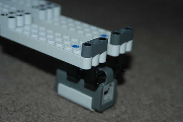Obtener dos palos de conector de 3 orificios y sujete a la parte superior del cuerpo. Luego conecte el sensor de contacto en la parte inferior del cuerpo a partir de los últimos agujeros (justo debajo de los conectores de 3 orificios).