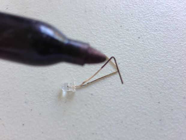• Introduzca los LEDs en los agujeros perforados en el paso pasado. ¿Encajan bien? ¡Excelente! Si no, taladro ligeramente hasta conseguir el ajuste deseado.