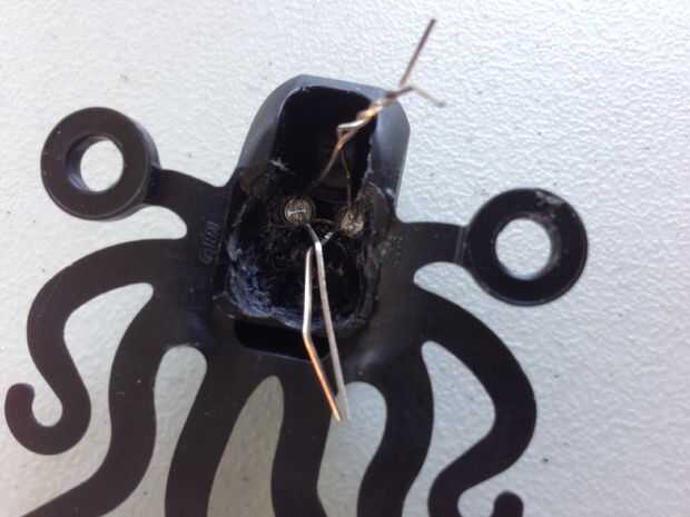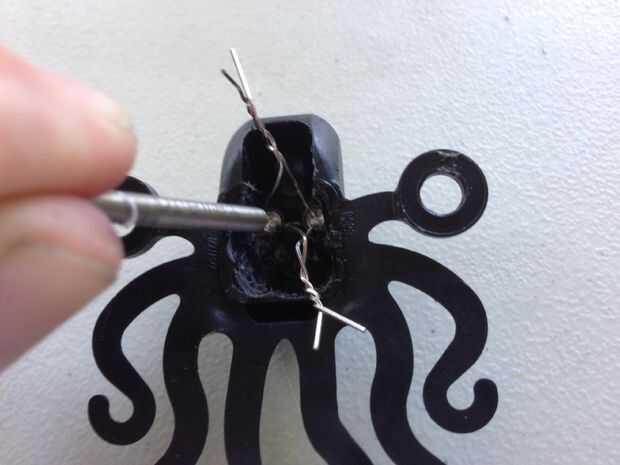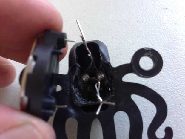 • Abrigo de emparejar los cables juntos (- / - & + / + respectivamente) mientras están todavía dentro del cuerpo. Esto asegura cuando saque que sostienen su forma (foto #4).