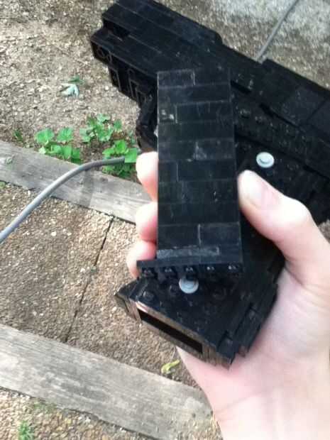 Este es mi dock cargador de iphone. Ha hecho lego de la forma como muchos otros pero este uno no utiliza pegamento y no destruir cualquier lego o los cables. La única parte de lego no es dos pequeños trozos de cinta adhesiva. Es fuerte y portátil y p