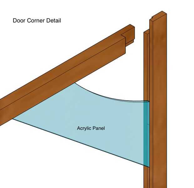 Ajuste en seco y luego pegar el acrílico y marco de madera para hacer la puerta. Usé un poco de pegamento E6000 en las ranuras para el panel de acrílico; y pegamento para las juntas de regazo mitad de madera. Compruebe que todo está cuadrado, abrazadera y dejar secar.