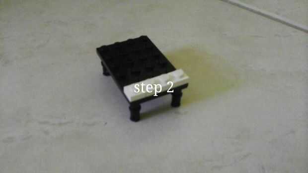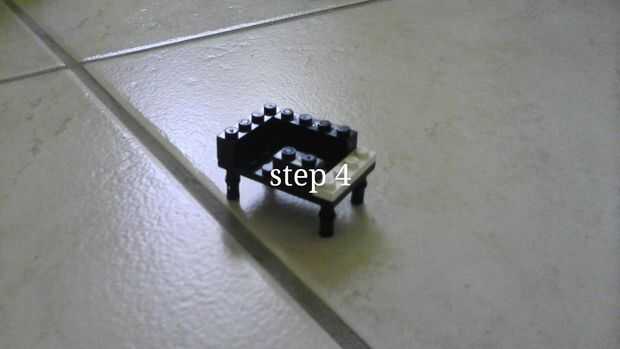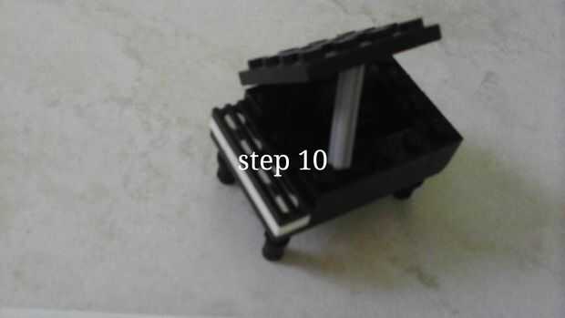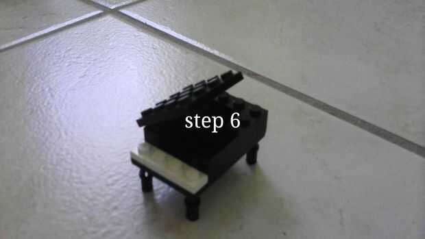 un hermoso piano negro puesto en escala minifigura.Paso 1: el Banco Paso 2: el soporte de piano Paso 3: la tapa del piano