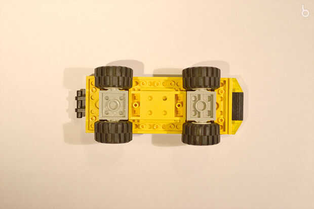 Piezas utilizadas en este paso: 2 x 2 placa (2), 2 x 2 con soporte de ruedas (2), neumáticos discos (2), neumáticos (2);