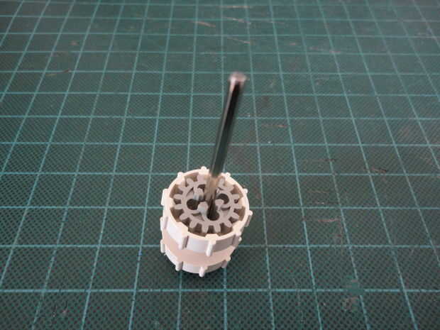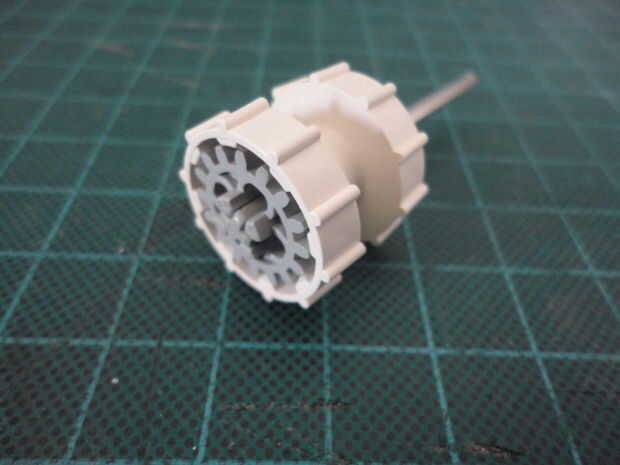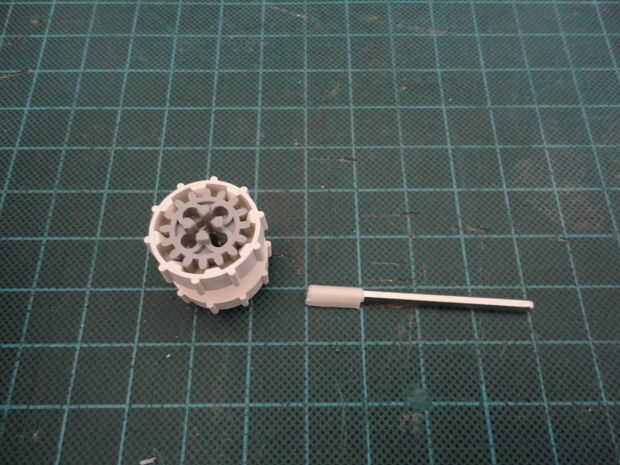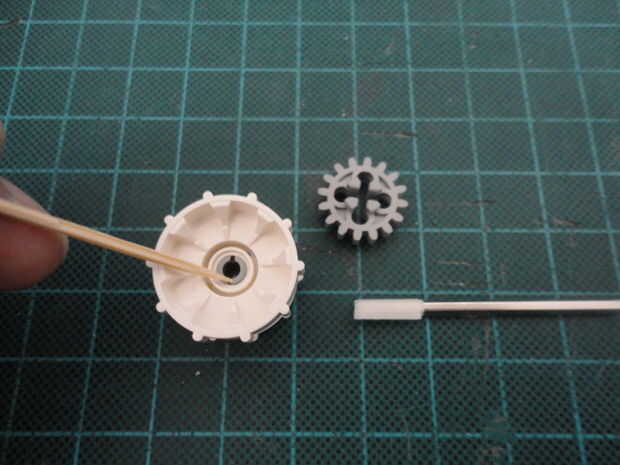 Y los centros también era conveniente para los ejes hexagonales de la caja de engranajes de doble Motor de Tamiya (núm. 97). Sólo una pequeña modificación en el hexagonal de la caja de cambios. ejes y bujes están obligados a hacerlos funcionar.