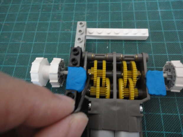No. 2. Ejes hexagonales de la caja de engranajes de Motor doble Tamiya montado.