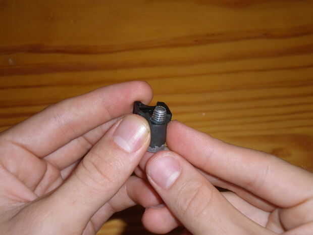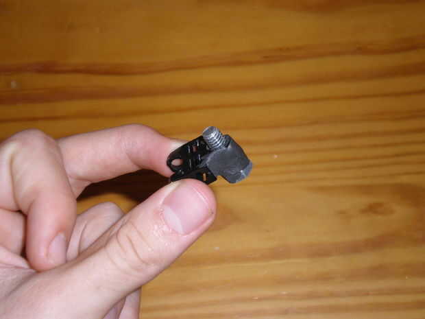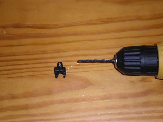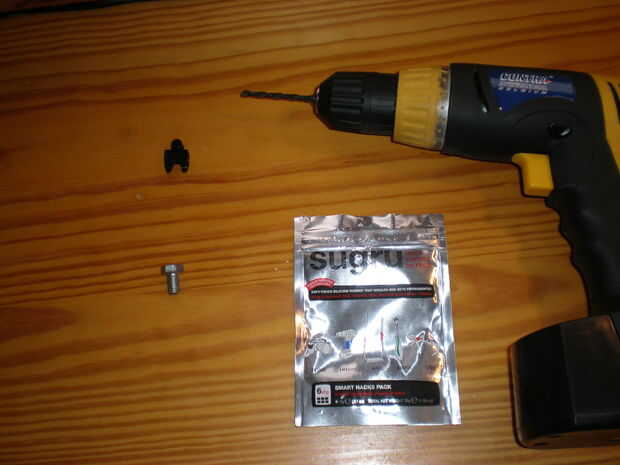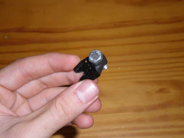 En primer lugar, perfore el "+" de la parte superior del soporte del brazo de Lego hasta que el tornillo lo cruzan fácilmente (no te preocupes si se rompe). Luego, tomar 5g de sugru y comenzar a rodar durante 30 segundos. A continuación, poner el tornillo en el agujero y llenarlo con sugru. Guarde el resto de sugru para el siguiente proyecto.