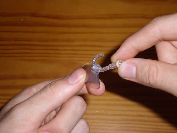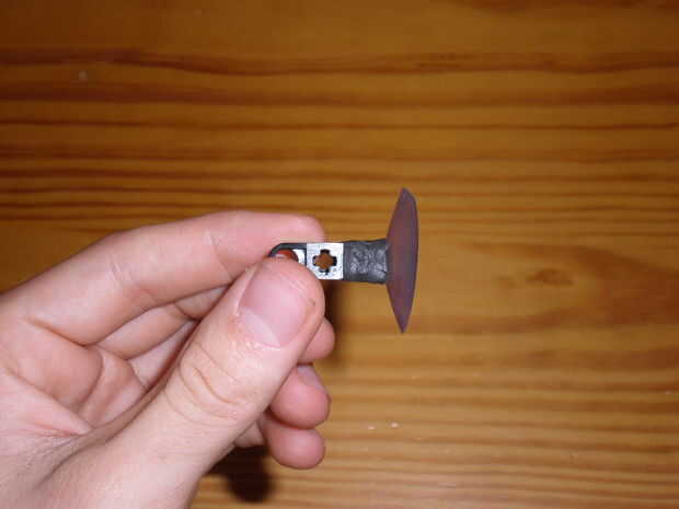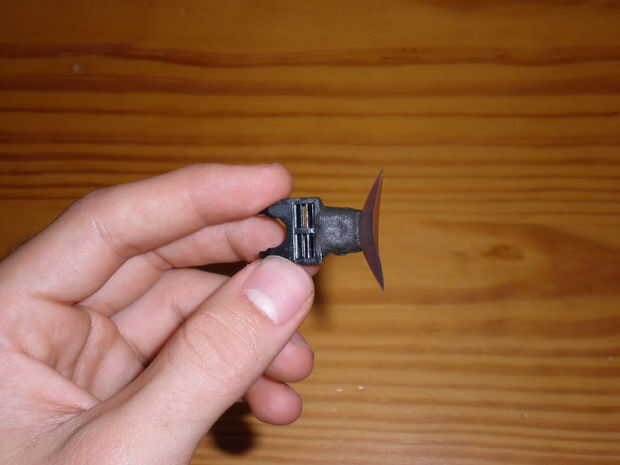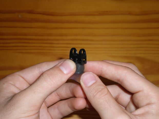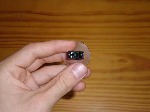 Extraer las partes innecesarias de la ventosa. Cortar la parte superior para colocar allí la cabeza del brazo bionicle. Añadir Sugru y dejar curar. Para obtener más información, seguir las imágenes.