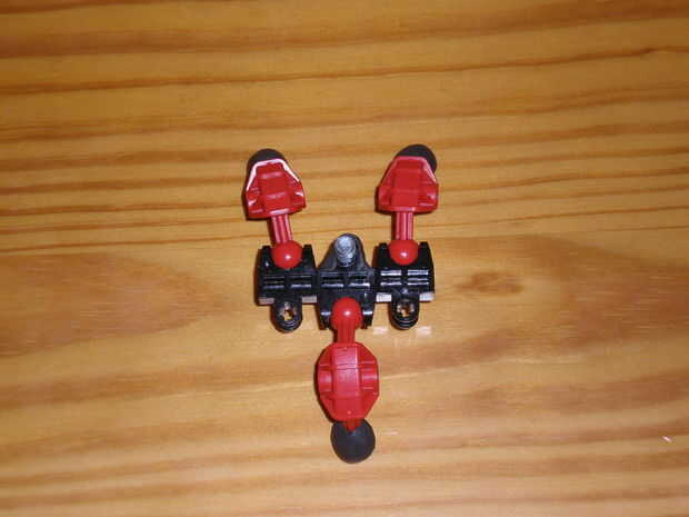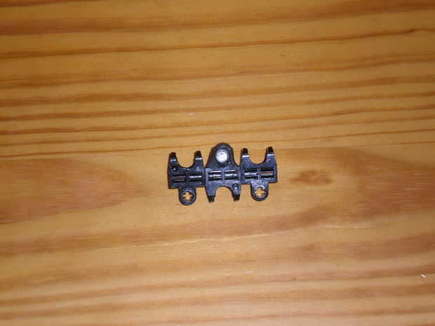 Poner los dos ejes en los dos orificios del adaptador. Luego, añadir los otros titulares, uno en cada eje y mirando hacia el lado opuesto. Finalmente, introduzca los brazos de la versión de agarre en los tres agujeros. Para más detalles, mira las fotos abajo.