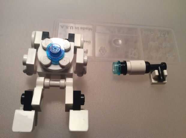 esto te mostrará cómo hacer modelos de Lego de Atlas y p-Body (o azul y naranja, contemplada por GLaDOS) del videojuego Portal 2.Ambos son totalmente articulados y tienen armas portal.Los pasos para cada parte en las fotos, se destacan las piezas que