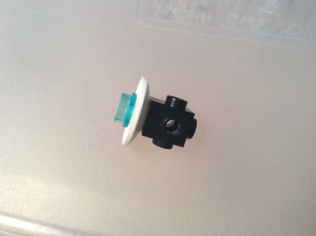 Cara de Wheatley, tomar un poste azul luz translúcido y ponerla en el interior de un mini satélite blanco. Conectar a la parte inferior de un ladrillo negro sextante.
