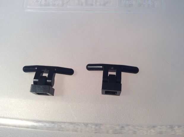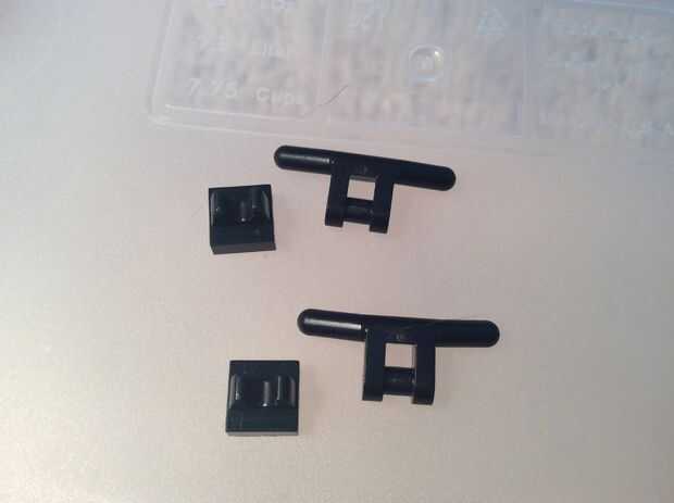 Para hacer las cosas de la manija de Wheatley, dos barras de mango negro y dos negras clips de 1 x 1. Ponga juntos ellos como tal. Conectarlos en el sextante y la curva que les adelante según lo deseado.