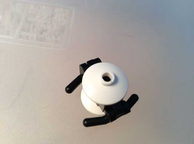 La parte posterior de Wheatley solo toma un pedazo de mini satélite blanco colocado en el lado opuesto de la cara.