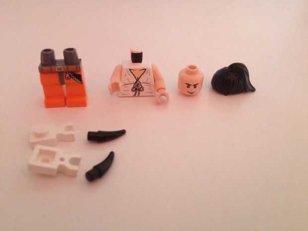 Estas son las piezas individuales. La cara y las camisas son específicamente de Indiana Jones. Creo que los pantalones son de un chico malo Lego agentes o de un hombre de la basura. Las botas largas otoño están hechas de piezas bastante común.
