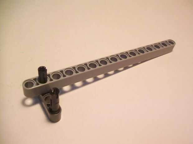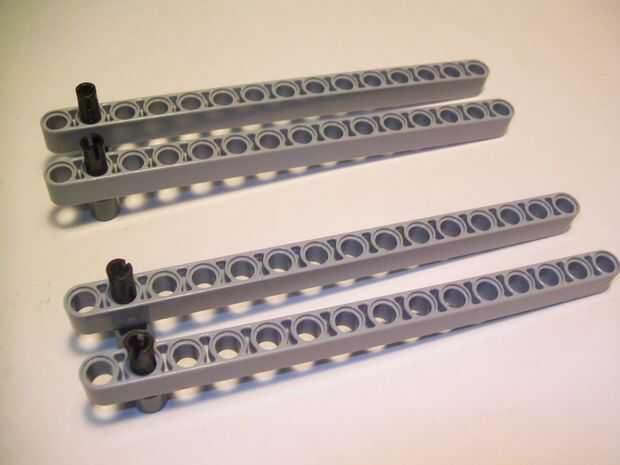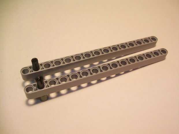 2) poner a uno de los pasadores negros largo en el segundo agujero de una viga de 15 longitud.