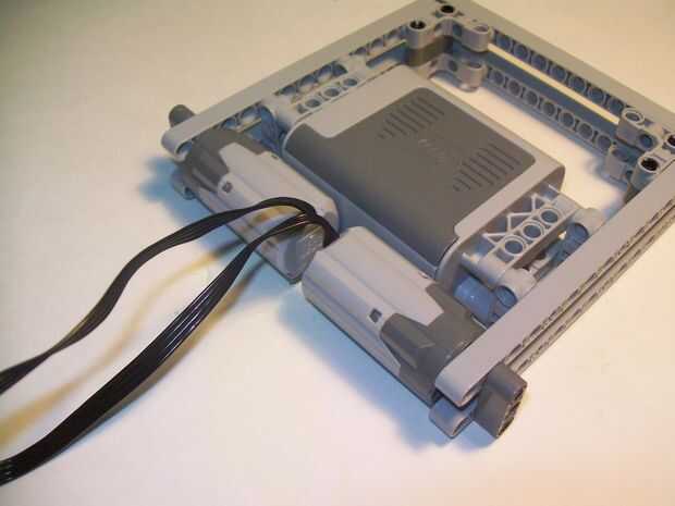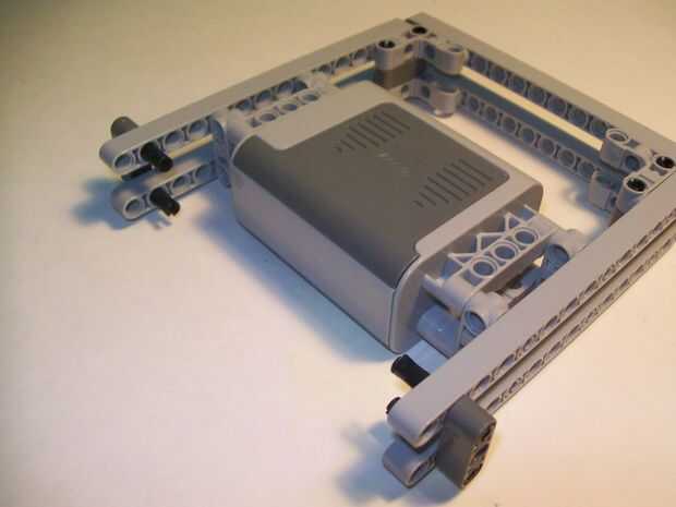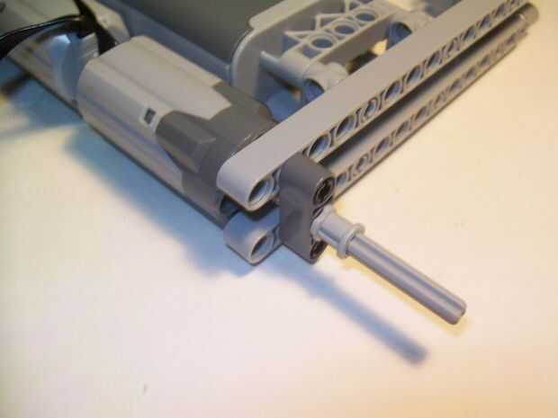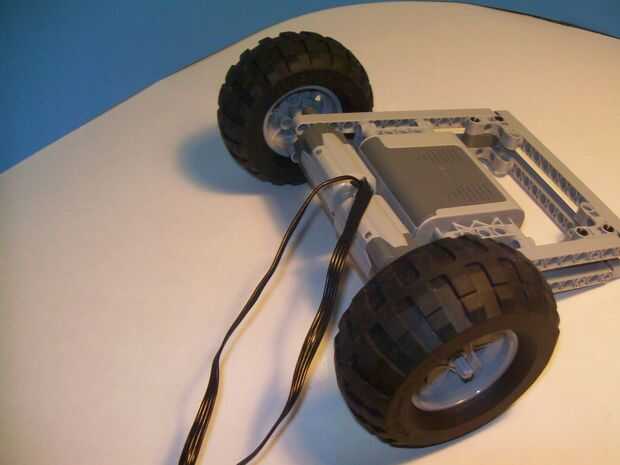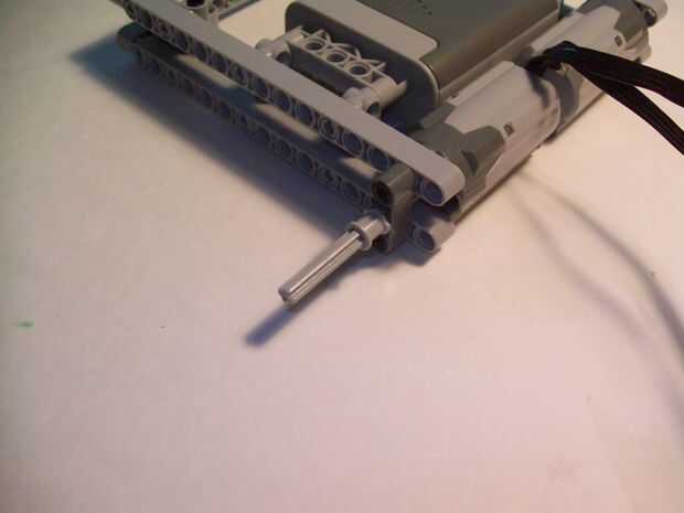 6) añadir las ruedas de goma grandes sobre las varillas.
