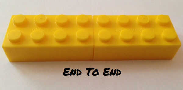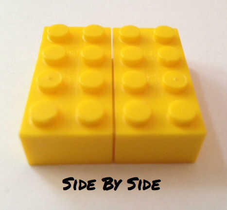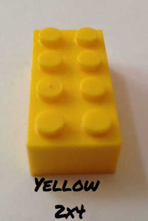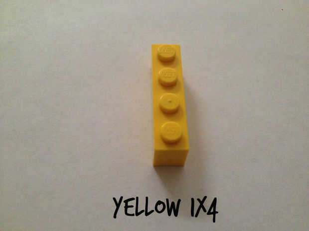 Arriba verás varios bloques LEGO en este proyecto. Estos bloques son de color amarillos, gris y negro. Estos bloques también varían en la cantidad de puntos que tienen y el patrón que se presentan en 1 x 2, 1 x 4, 2 x 2 y 2 x 4. También hay diferentes estilos de colocación utilizados en este proyecto. Bloques pueden colocarse codo a codo con los lados más largos juntos, de extremo a extremo con los lados más cortos juntos.
