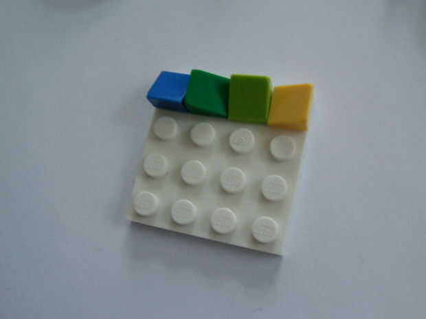 una divertida técnica usando queso transparente cuesta pedazos del edificio.Construí un marco uniendo dos pilas de 6 ladrillos de 1 x 2 en un 2 x 6 basan de dos placas gruesas. A continuación agrega 2 pilas de ladrillos transparentes de 1 x 2 y toped