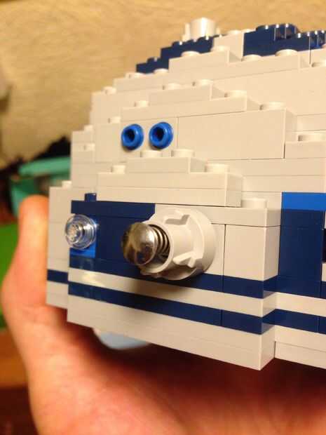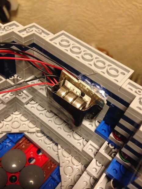 En primer lugar tuve que averiguar cómo funciona el chip de sonido sin necesidad de cables externos mostrando. Decidí hacer un botón interruptor que usa una parte existente de la Lego R2. Este interruptor es soltado cargado tan sólo presiona la almohadilla de presión en el tablero una vez. Similar a cuando usted apriete barriga de R2 para hacer el ruido.