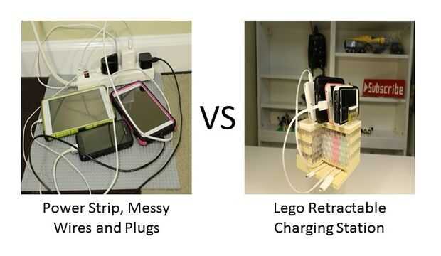 Producto final: LEGO estación de carga retráctilUna 4-Port 40W 8A USB estación de carga de piezas de Lego.Esta estación de carga consiste en 2 x micro USB y 2 x conexiones de relámpago.Esta estación de carga mantiene cuidadosamente todos los cables e