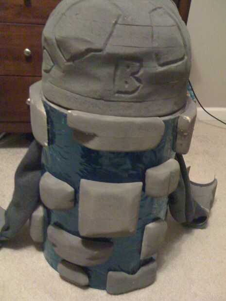 Decidí poner manos a las mangas para mantener juntos el traje pero no tienes que. Iba a poner espuma en los brazos para que se vea rocoso pero habría sido difícil entrar y salir del traje.