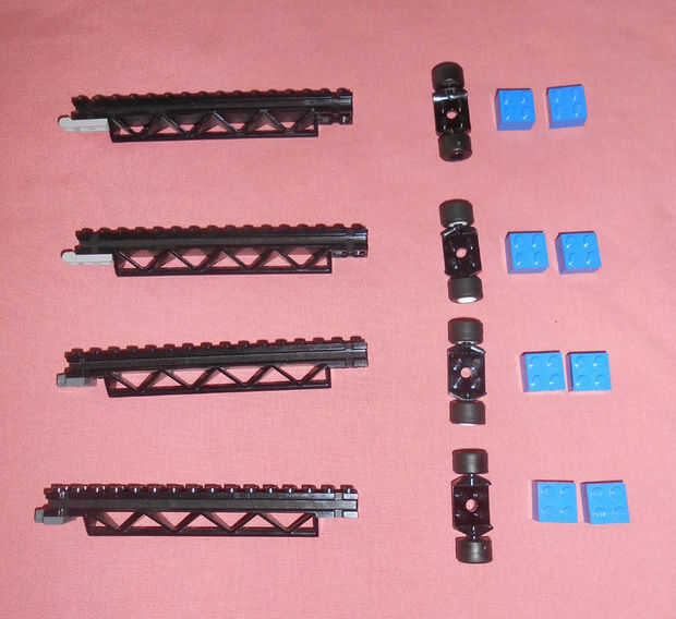 -Las bisagra-piezas provienen de la pierna de un modelo AT-ST (LEGO Star Wars), razón por la cual hay diferentes longitudes