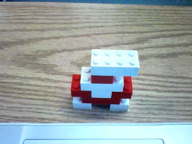 Añadir un 2 x 2 rojo sobre el blanco 2 x 4. Finalmente añadir un 2 x 4 blanco sobre el rojo 2 x 2. Ahora tienes un LEGO Santa Claus.