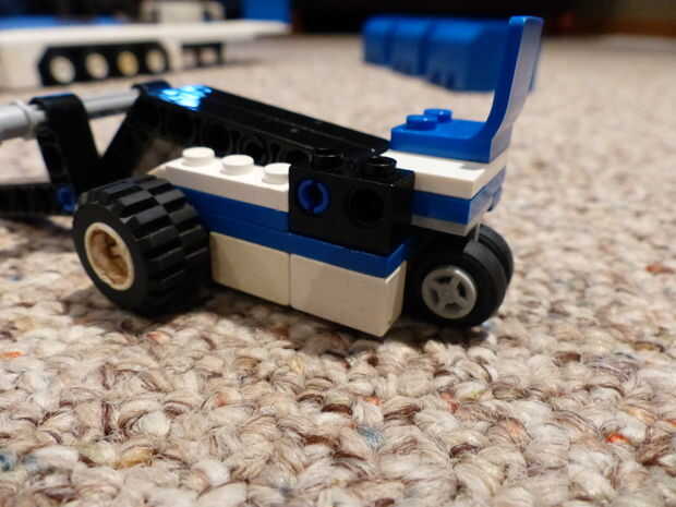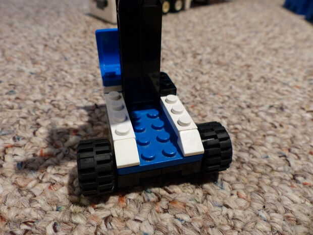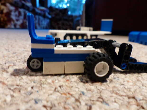 El montacargas es muy fácil de hacer y solo toma un par de minutos. La barra gris es importante ya que mantiene las dos horquillas bastante incluso y también es necesario para el transporte.