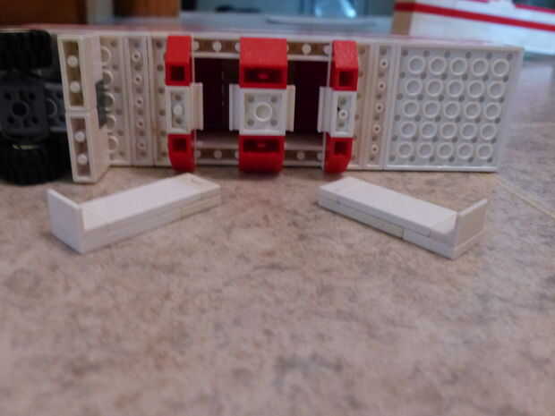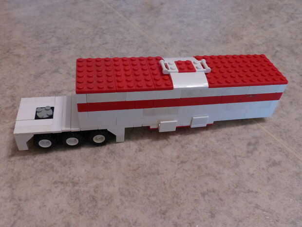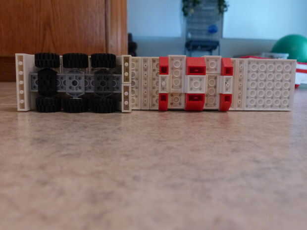 El primer trailer es un poco extraño pero así es en real. Necesita dos de los tres ejes que detrás de la caja y uno debajo de la caja. La razón de esto es porque el 2 º trailer necesita conectarse detrás de él con un enganche giratorio. La parte superior del remolque plana piezas 6 de ancho y dejando un agujero en el centro de las tapas. a ambos lados de la tapa es una redonda de 4 x 2. la tapa es una 4 x 2 con una manija en ambos lados y 2 x 2 en el centro. Esto sólo se sienta muy bien en el agujero y es fácil de abrir. El vaciado sistema comienza con una pequeña pared en ángulo de con un 2 x 1 con una pequeña ficha. Después de un agujero de 2 x 4, hay otro muro, esta vez doble el ancho y tener una pestaña en ambos lados. Después de otro agujero de 2 x 4, hay una pared al igual que el primero de ellos. Las diapositivas tienen el pedazo plano de L en el extremo y el resto de los 6 x 2 piezas lisas. Esto se desliza en y cierra el agujero. El interior ha angulada 'piezas de azotea' en cualquier lado y una cumbrera de techo de 4 x 2 entre las dos aberturas. Esto hace que el grano a los agujeros de drenaje, y no habrá ninguna pegada en las esquinas. (ellos tienen esto en las cajas reales demasiado.)
