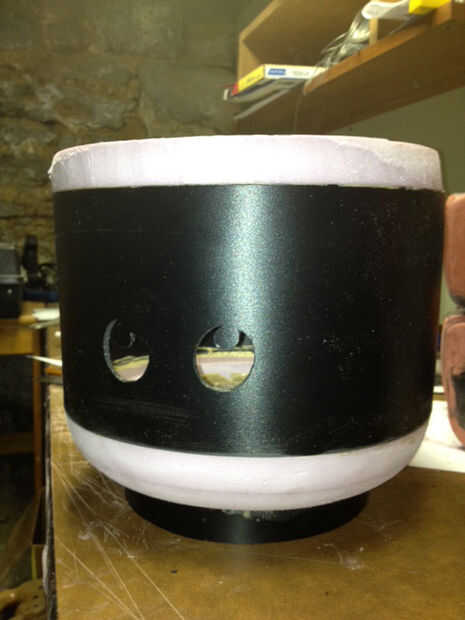 El traje es 100% hecho a mano utilizando principalmente un PVC de baja densidad espuma tablero llamado sintra y juntas se llenaron de Bondo. Espuma de poliestireno fue utilizado para esculpir el cabello y el borde biselado alrededor de la cabeza. El traje fue pintado a spray y gráficos fueron creados en Adobe Illustrator e impreso en vinilo adhesivo. Las únicas herramientas necesarias para este traje fueron 2 tipos de cuchillos x-acto, 1 pesada y un bisturí para realizar cortes circulares, una pistola de calor para curvar el tablero de la espuma de sintra, una regla de metal, algunas abrazaderas (opcionales) y una escofina para formar el detalle en el pelo. Pegamento industrial fue utilizado para unir la sintra. Pegamento (E-6000) así como PL Premium y un poco caliente.