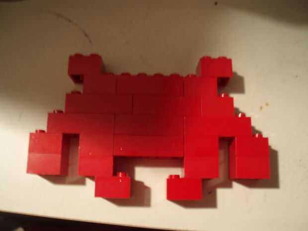 tomar tus legos, cualquier color que usted desea y hacer un invasor del espacio de cualquier tipo, elegí éste porque pensé que podría funcionar como un cinturón de lo mejor