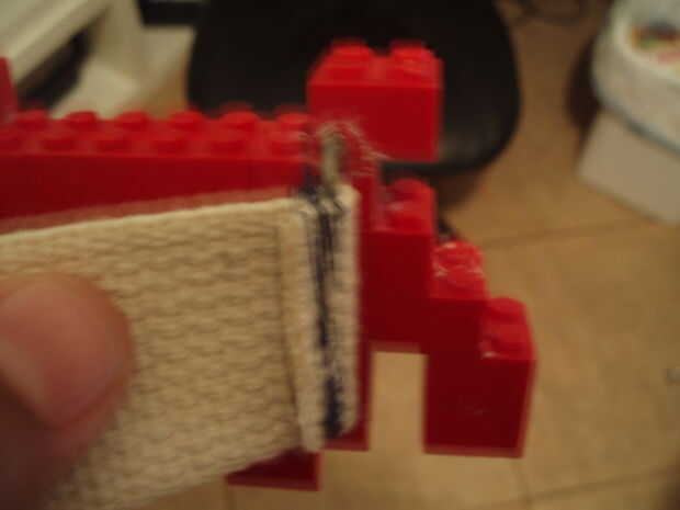 correa elegí tela y resistente, y colocar en el bucle. el cinturón un poco a utilizar debe ser fácil de cortar, pero no de fácil. Fije por coser alrededor del lazo