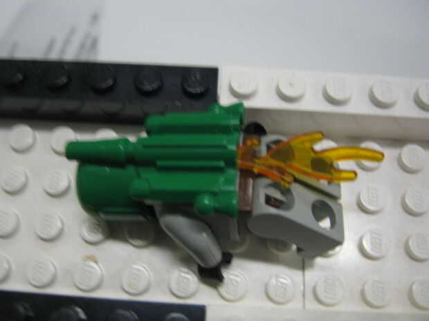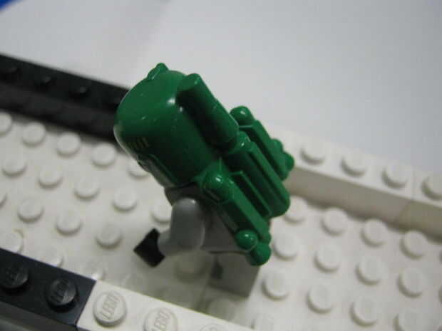 El jet pack utilizado por Boba Fett viene con el personaje, pero para hacerlo aparecer como si está en, coloca un pedazo de fuego debajo del jet pack e hizo como él fue ser propulsado.