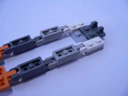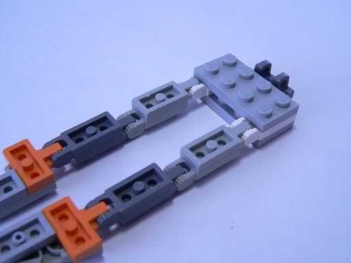 Mientras que las piernas se dan la vuelta, colocar una placa de 2 X 4 en el 1 X 2 W. placas de horquilla/VERTICAL/extremoque está hacia arriba (imagen 1).