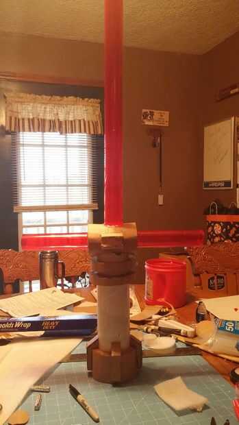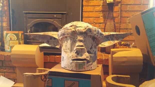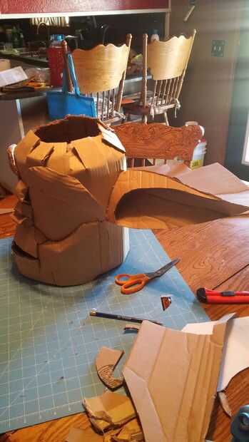 este traje tuvo un poco más de lo esperado debido a la reducción de todas las formas pequeñas. Pasé cerca de $6 en tela y $4 en espuma. También usé pegamento, cartón y papel maché. Esto hice muchos como yo lo hice el traje de súbdito. Usted puede enc
