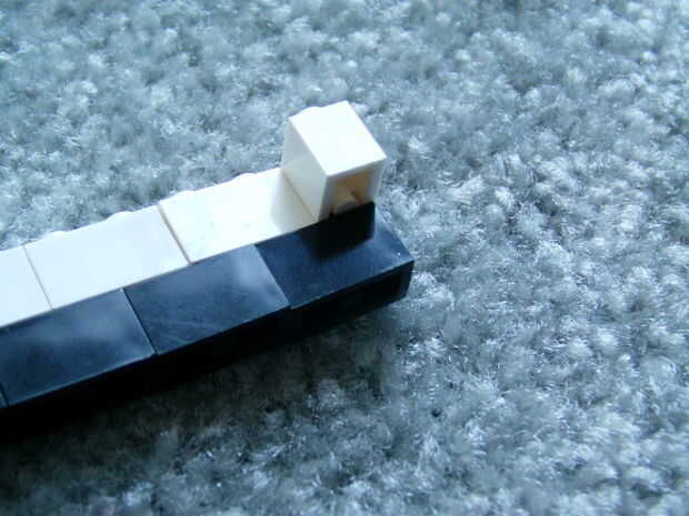 Después de construir una tira con 7 (10 funciona mejor la versión de 3 puntas) fila de ladrillos en cada uno el momento de cambiar direcciones. El próximo ladrillo blanco gire 90 grados. Añadir la capa superior de ladrillos para la ayuda.