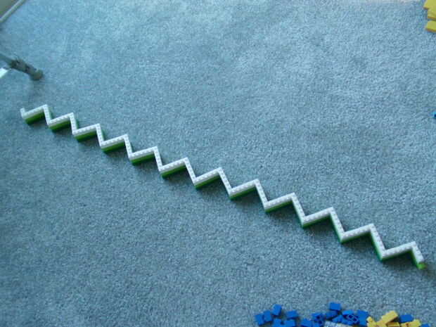 hacer uno de estos y ver si puede resistir haciendo ruidos de la sierra.Paso 1: Se necesita:1-180 x 2 ladrillosdos colores: 90 de cada colortres colores: 60 de cada colorPaso 2: Hacer un patrón de zig-zag como se muestra.Paso 3: Agregar la capa super