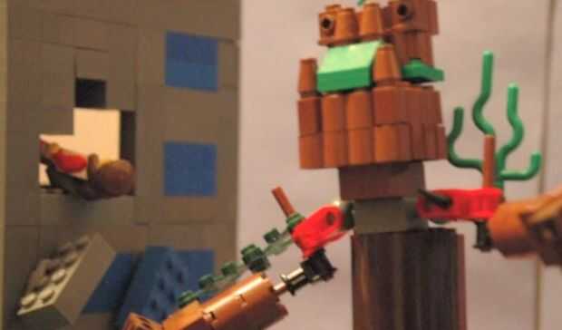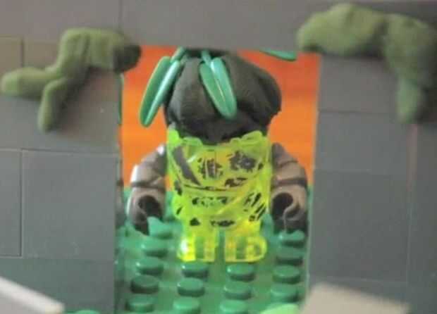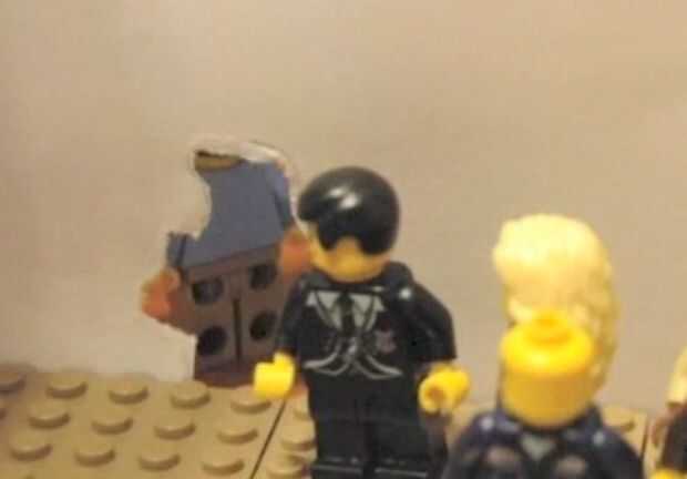 Después viene el monstruo hemos añadido un efecto en el 1:34 para que se vea como la minifigura funcionó a través de una pared. Para ejecutar esto, nos remonta a forma de minifigura en un pedazo de papel. Después, recortar el contorno y colocar la pared en nuestro sistema. A lo largo de nuestra película verá que utiliza varios métodos para romper paredes. Para hacer la pared se rompe más creíble intenta añadir escombro como se ve en 2:01 y 4:50.