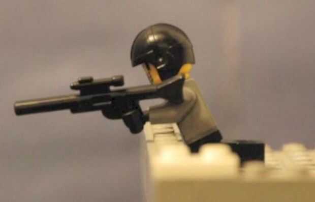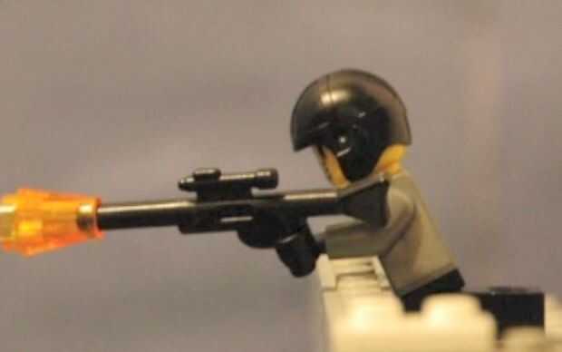Llegamos a dos métodos diferentes para el rodaje de disparos en nuestra película. En 1:55 teníamos el objetivo de minifigura la pistola y luego tocamos un efecto de sonido de pistola. Sin embargo surgió una solución mejor. Se utilizó un trozo de cono anaranjado claro y había puesto que en el extremo del arma cuando disparó. Usted puede ver este efecto en acción en 5:21.