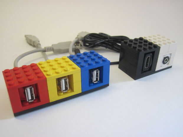 La forma normal de hacer esto sería con un cuadro de proyecto personalizado y regular montaje de conectores, como los HDMI y USB los de Adafruit. Para ello, necesitará ya sea máquina o laser-cortaron un panel personalizado para adaptarse a todos los conectores, y no tengo los medios para hacer tan (aunque... tos, tos, concurso de completo espectro láser). He visto un montón de casos de frambuesa Pi LEGO frescos por ahí - pero la mayoría de ellos sólo incluya el Raspberry Pi, sin todo el espacio extra de un hub USB y un protoboard, o panel externo robusto de montaje conectores.