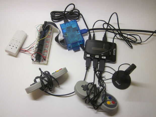 La motivación para este proyecto vino cuando combiné mi frambuesa Pi controlado por voz los enchufes con un RetroPie. Debido a la cantidad de cables y periféricos involucrados (un concentrador USB, micrófono, dos controladores USB, protoboard, control remoto inalámbrico, además de la normal HDMI y poder cables para la Pi), esto condujo a un bastante enredado lío de cables que exactamente no ven muy bien sentado en el mueble de TV. Por lo tanto, quería construir un buen caso para sostener todo lo que parecía algo así como una consola de juego regular - idealmente con las conexiones externas para los dispositivos USB, un puerto HDMI, un interruptor y un solo cable (compartido por el Pi y el hub USB).