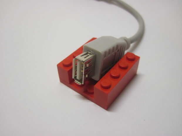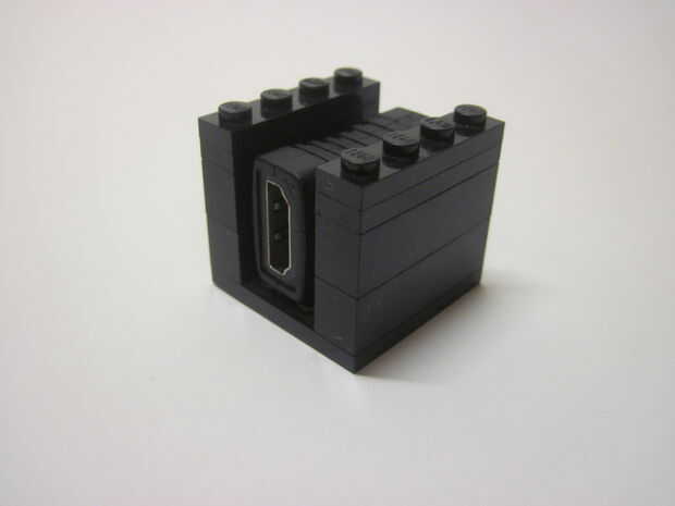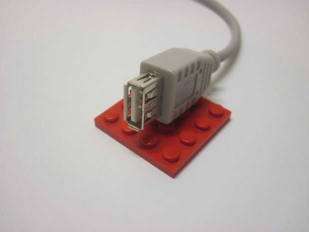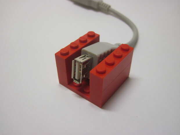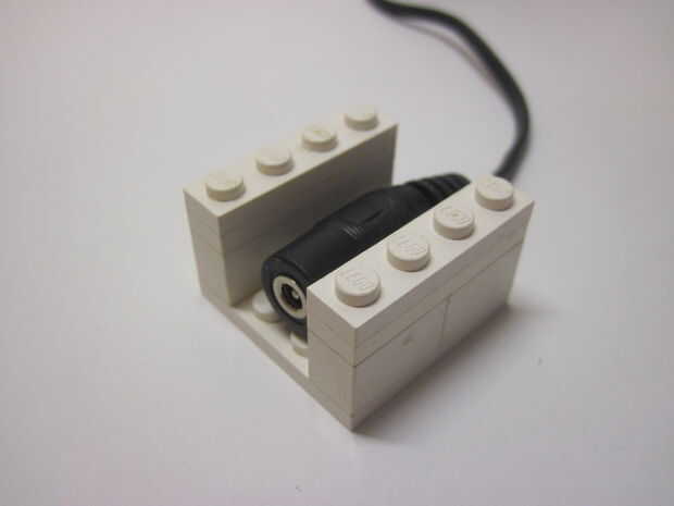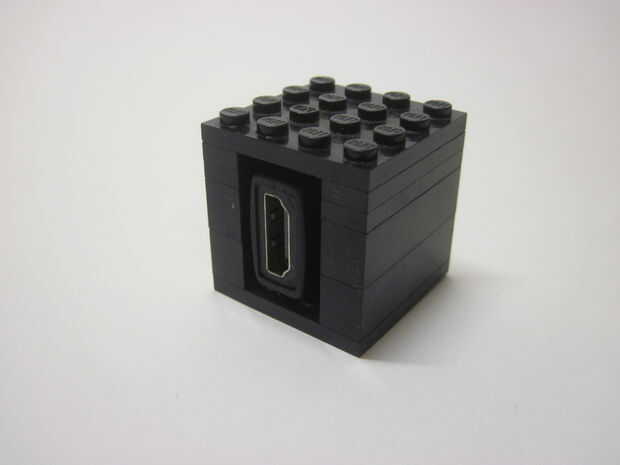Yo le recomiendo hacer un "dry run" - construir las estructuras LEGO sin utilizar cualquier Sugru. Asegúrese de que los cables calcen bien, con un pequeño espacio alrededor de los lados el paquete en algunos Sugru y mantener en su lugar. Como se puede ver arriba, he intentado esto para mi USB, HDMI y conectores de barril jack. He utilizado placas de 4 x 4 para la base y parte superior de cada caja, y placas de 1 x 4/ladrillos para las paredes laterales (según sea necesario dependiendo de la altura).