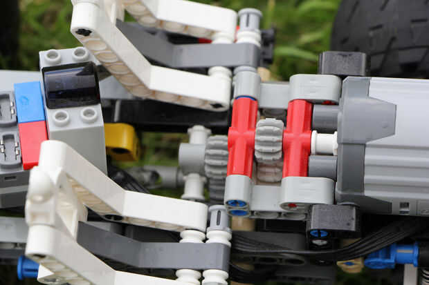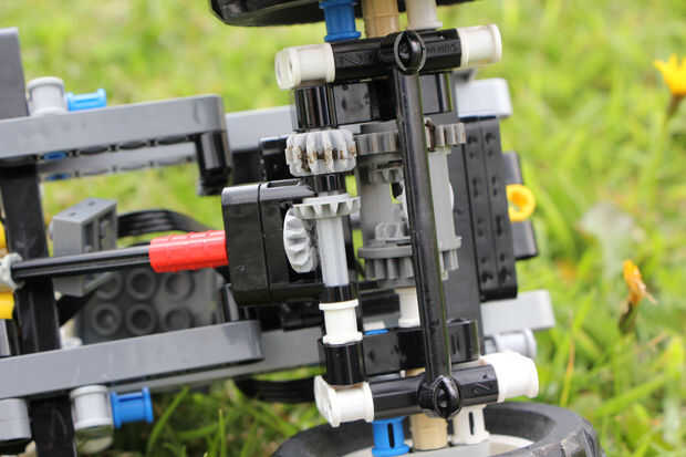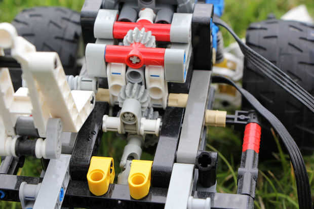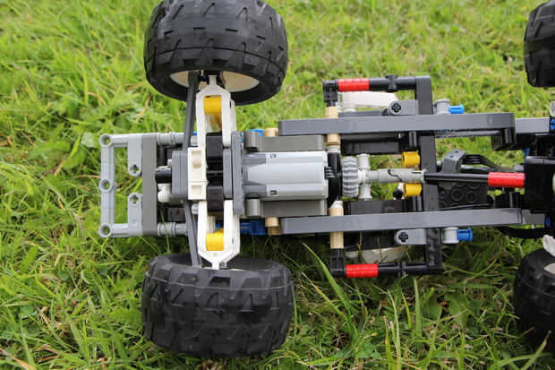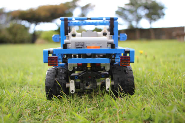 TheFoofinator ya modificado originalmente el camión todoterreno technic lego azul (número 8435), con funciones de la energía del conjunto de bulldozer, para permitir el control remoto completo de camión.