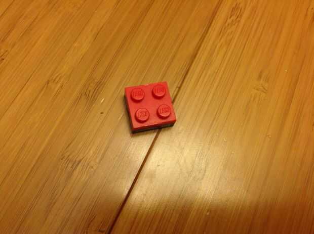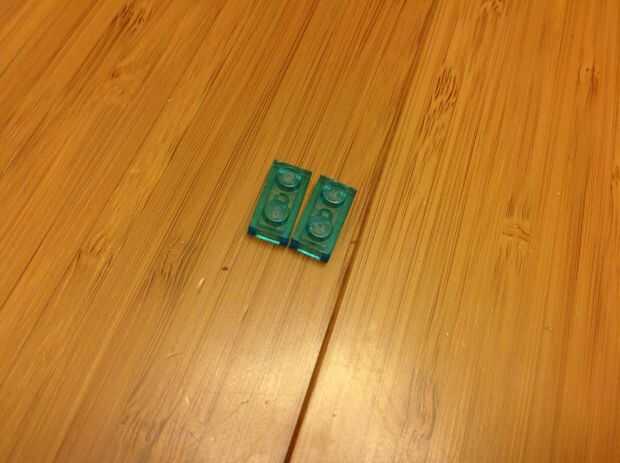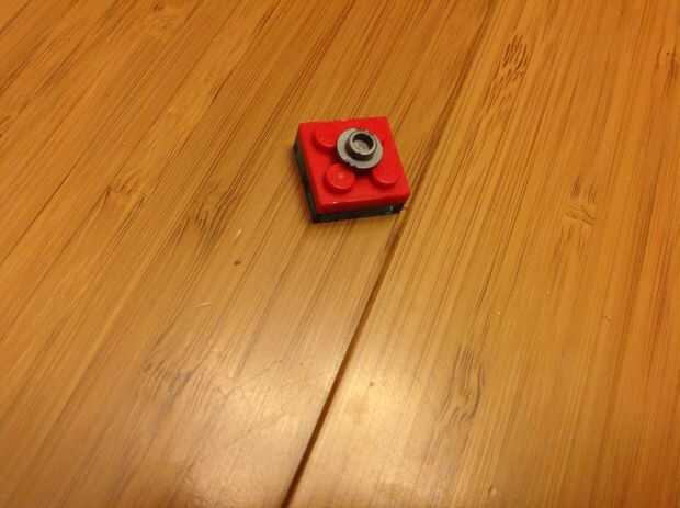 Comienzo poniendo un ladrillo de 2 x 2 azul entonces agregar un ladrillo de 2 x 2 rojo en la parte superior del ladrillo azul. A continuación añadir a una pupila negra. Usé el gris porque no puedo encontrar cualquier montantes negro.