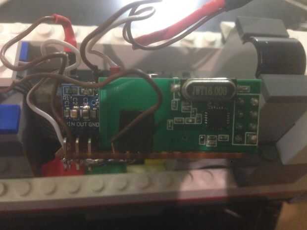 Además he añadido un 5v a 3.3v convertidor que está conectado a la batería de Lego para el Nano. Hice un pequeño alambre de la Vout del convertidor a un pin de Vin en el Nano porque es en el puerto serial de mi Nano.