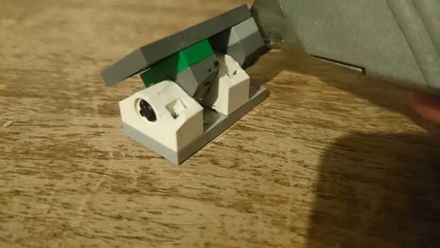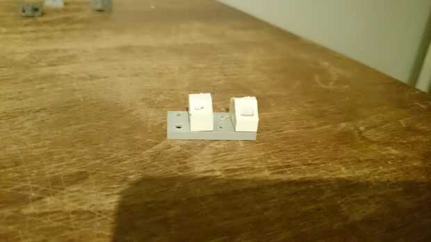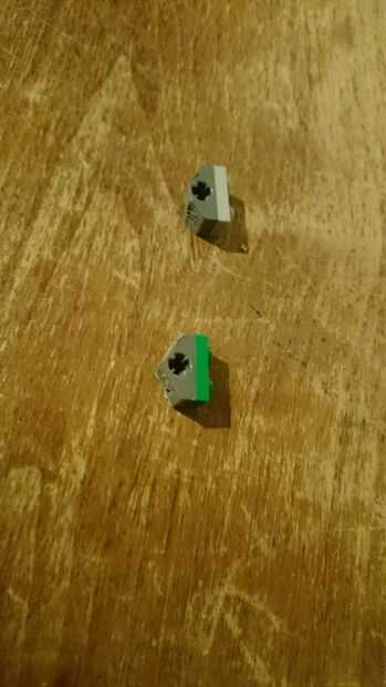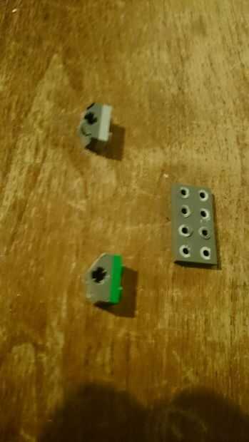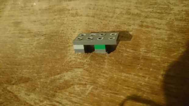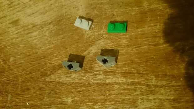 1. Tome las piezas de 2 x 1 con perforaciones circulares y pegarlos en los lugares correctos en la pieza de 4 x 2 con 4 pinzas corte