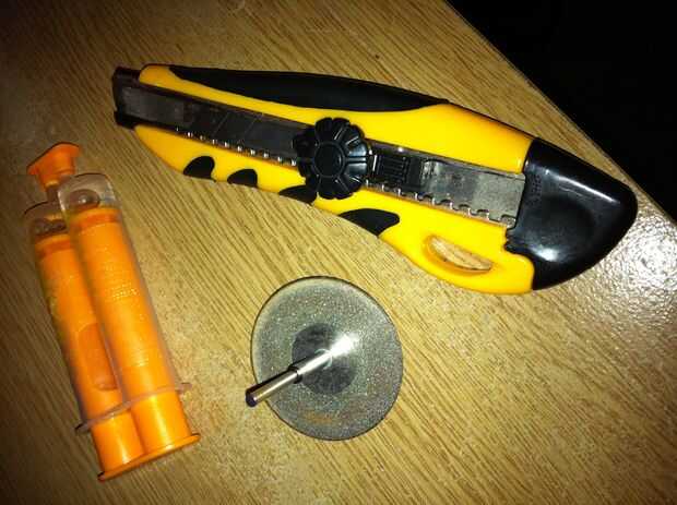 Usé un cuchillo stanley para el corte, también usé el disco de corte para pulir la placa de circuito.