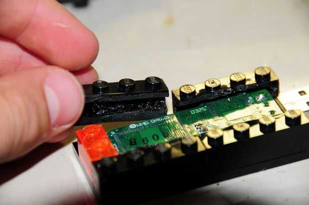 Una vez la seca GLUR y el USB es estable, poner pegamento en los otros dos 1 X 4 y colocarlas en la USB. ASEGÚRESE DE QUE LOS LADRILLOS DE 1 X 4 ESTÁN EN SU LUGAR Y NO HAYA PRESIÓN EN LA MEMORIA USB PORQUE SE PUEDE ROMPER. IMAGEN 3 MUESTRA ALGUNOS LUGARES USTED PUEDE PONER CALIENTE DEL PEGAMENTO. LUEGO PONER PEGAMENTO CALIENTE EN LA SEGUNDA PIEZA PLANA DE 4 X 8. LUEGO COLOQUE LA SEGUNDA PIEZA PLANA DE 4 X 8 EN LA PARTE SUPERIOR LAS PIEZAS DE 1 X 4. UNIR TODO EL CASO HASTA QUE ESTÉ SÓLIDO.